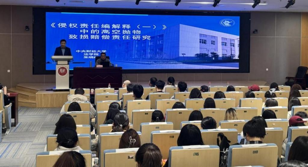 本站讯(通讯员 侯慧秀)12月6日,法学院“中联法学讲坛”系列活动在京津冀教师发展协同创新中心小报告厅举行,中央财经大学法学院教授、博士生导师朱晓峰以“《侵权责任编解释(一)》中的高空抛物致损赔偿责任研究”为题作报告。讲座由法学院院长郝磊主持,法学院副院长郭明龙、中联律师事务所天津办公室高级合伙人邱凯律师以及天津君辉律师事务所高级合伙人张卿卿律师担任与谈嘉宾。法学院研究生与本科生共180余人参加此次讲座。