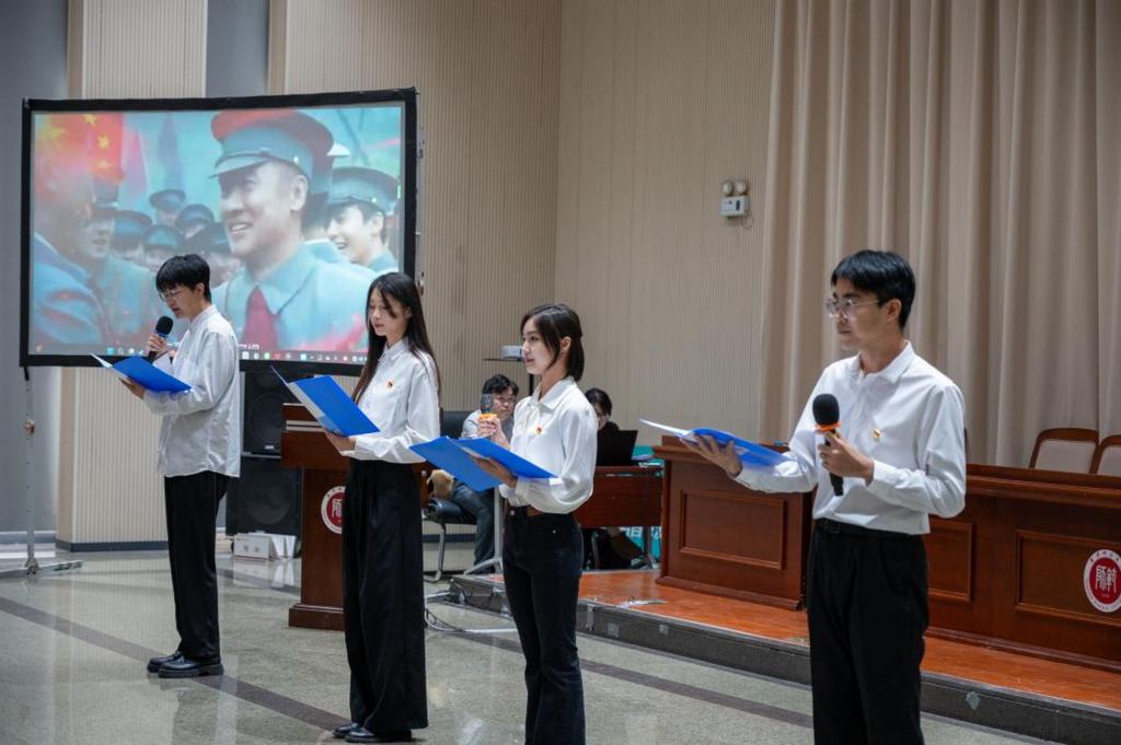 在宣誓环节中,孟小丽分别带领全体新发展党员和团员同学郑重宣誓。“为共产主义事业奋斗终身”的誓词在会场回荡,在场同学们心潮澎湃。