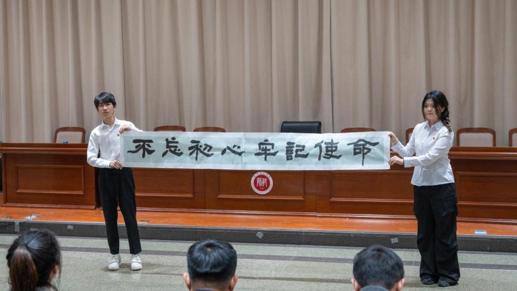 新发展党员代表2022级美术与书法专业硕士王祥栋、新发展团员代表2023级表演(服装表演与形象设计)专业本科生岳宸羽分享了自己踏入大学校园以来努力入党、入团的点滴经历。在优秀榜样的感染下,在身边典型的言传身教下,他们逐渐将为人民服务牢刻心底,纷纷表示要不断提高自身政治素质,大力弘扬艰苦奋斗的革命精神,以“功成不必在我”的精神境界和“功成必定有我”的历史担当,努力奋斗,为强国建设贡献青春力量。