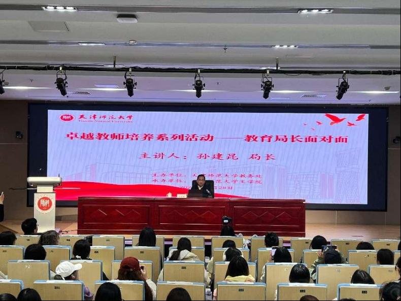 本站讯(通讯员 李倩)11月28日下午,我校在京津冀教师发展协同创新中心报告厅举办“卓越教师培养系列活动——教育局长面对面”报告会。本次报告会邀请天津市南开区教育局党委书记、局长孙建昆以“向上走,路也正长”为题,为学校全体公费师范生带来了一场精彩报告。
