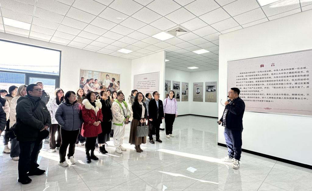 在陈家寨村周恩来青少年时代展室里,师生党员认真观看周恩来总理青少年时期的珍贵史料和实物,在尹德军的生动讲解中,重温周恩来总理青年时代笃志寻求革命真理的奋斗历程。在中交天津航道局蓟州生态修复展示馆,师生深刻感悟蓟州区在生态文明建设方面取得的显著成果,见证区域高质量发展建设成果。