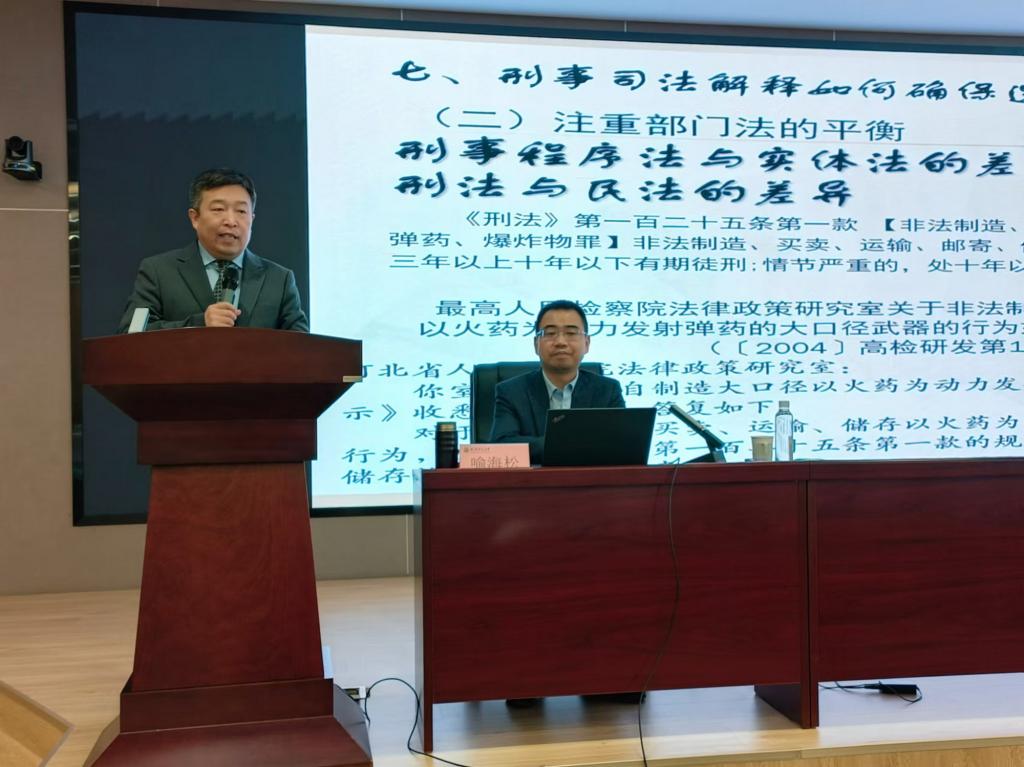 本站讯(通讯员 侯慧秀)10月26日,法学院在京津冀教师发展协同创新中心B区小报告厅举行“法学讲坛”。最高人民法院政策研究室副主任喻海松以“刑事司法解释的实践逻辑”作了报告。法学院师生180余人参加此次讲座。法学院院长郝磊主持。