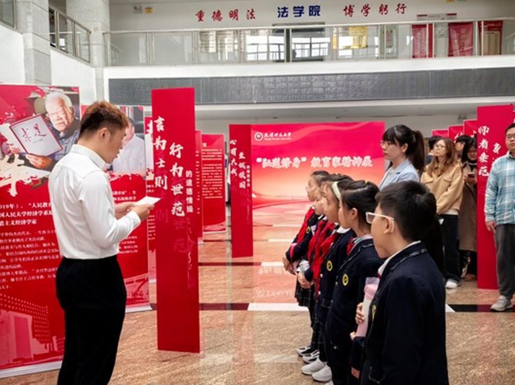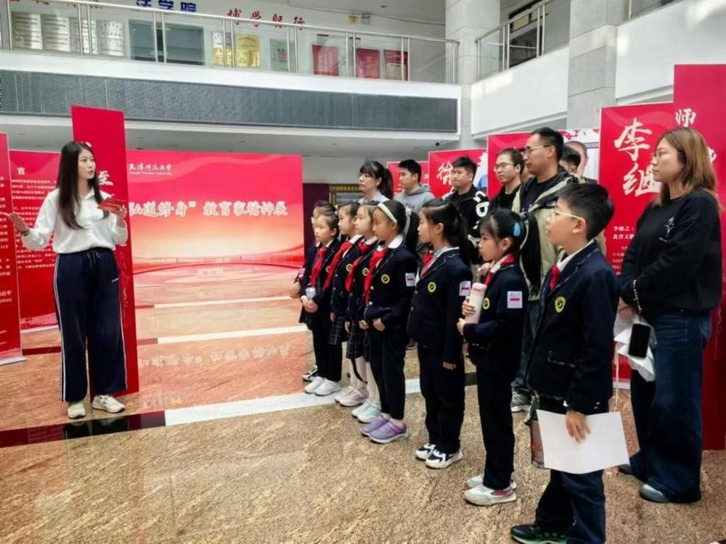 此次,天津市逸阳梅江湾小学师生进校园参观“弘道修身”教育家精神展活动,是学院构建“大中小”德育一体化的新举措,未来学院将持续深化“大中小”不同学段的合作共建,让教育家精神宣讲“出大学、进中学、入小学”,持续以教育家精神为引领,开展不同学段学生的德育教育,持续深化铸魂育人,引领大中小学生健康成长,一同传承教育火种,共筑强国梦想。