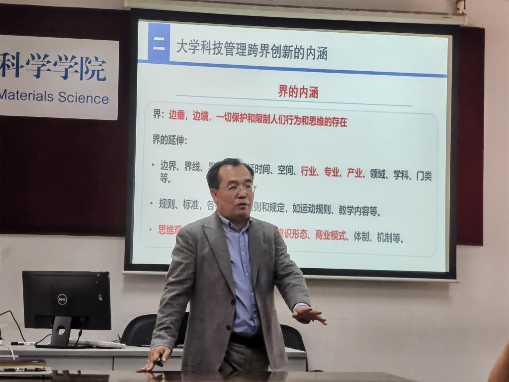 新一轮科技革命使传统的学科知识边界和技术边界变得越来越模糊,跨界创新已经成为一种趋势,对大学科技管理提出崭新要求。王凡俊教授从大学科技管理跨界创新的必要性、内涵、实践和思考等4个方面展开讲解,深入探讨了学术跨界合作、人才综合培养的重要性,用真实的案例表明通过突破原有边界局限、不同学科领域的碰撞、交叉和融合,能够产生具有重大价值的创新成果。王凡俊教授强调科技管理部门在跨界创新实践中要充分发挥创新氛围的营造、科研工作的专业性指导、服务解决具体问题和有效监督规范科研活动等多元化职能。结合学校党委部署的“交叉融合科技创新提能工程”,王凡俊教授还介绍了学校促进多学科融合的交叉科研平台计划,对交叉科研平台的申报流程和管理制度进行了详细解读。