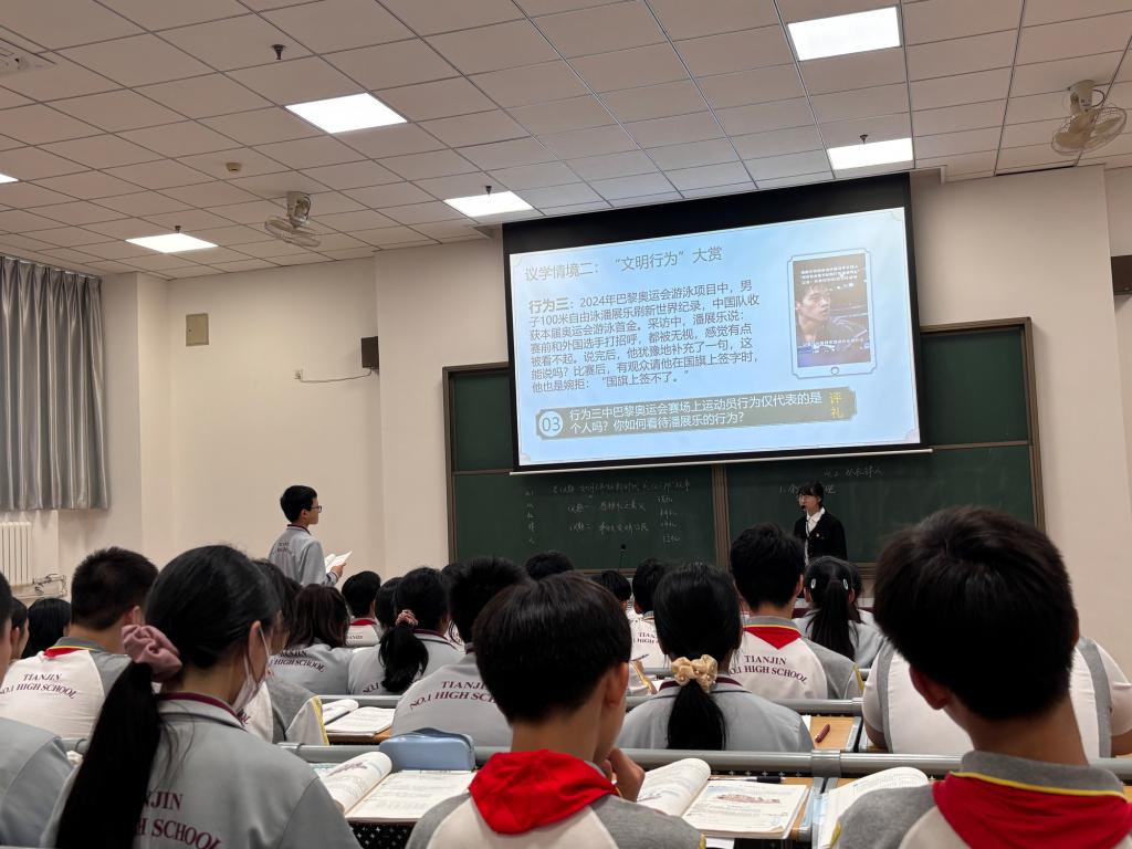 与会师生先后观摩学习了天津市第一中学思政课教师迟筱瑾讲授的高一年级思政课程“只有社会主义才能救中国”和高曼讲授的八年级思政课程“以礼待人”,两位老师的授课深入浅出,内容丰富翔实,语言形象生动,充分展现了扎实的教学基本功和良好的教师专业素养。