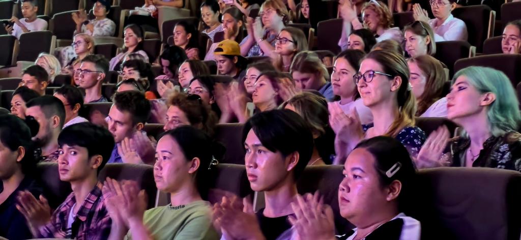 正在我校开展暑期中文交流营活动的俄罗斯、泰国、越南等国家的百余名外籍师生也怀着对中国文化的极大兴趣来到演出现场。