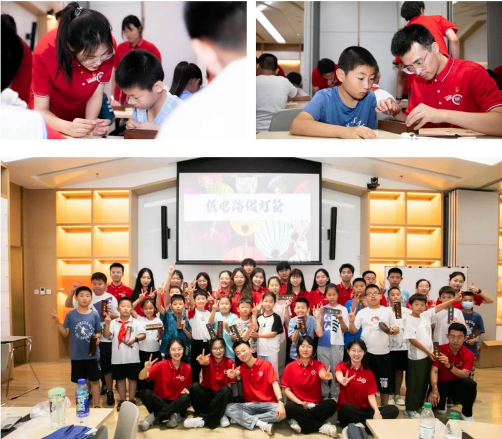 主题活动期间,为进一步发挥学生党员的示范引领和服务社会作用,学生党员骨干“旗帜班”联合物理与材料科学学院“物理好玩儿”科普实践团,前往中新天津生态城图书档案馆,为小朋友们带来一堂“制作灯箱”公益科普实践课。在大学生们的悉心讲解和“手把手”指导下,小朋友们学习了科学家精神,了解了电路串并联的基本知识,更在亲自动手实践中走进物理、走进科学。