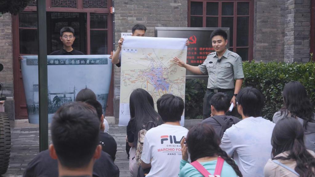 “天津是一座见证了中国革命史、军事史以及反侵略史的伟大历程的城市,我们要怀揣敬仰之心,这里是我们铭记历史、传承精神的宝贵课堂。”在现地教学讨论交流中,孙家政老师谈道。历史是最好的教科书,革命旧址是最生动的课堂。任课教师吕勇在聂士成殉难纪念碑前,在平津战役天津前线指挥部旧址,结合现场大量历史影像、文物、实景,带领同学们重走天津人民反侵略的峥嵘道路和人民军队的光辉历程,还原历史场景中的红色故事,挖掘故事背后的革命精神,引导同学们从历史中坚定文化自信,强化爱国报国信念。“现地教学是从形式深入内容的,通过在历史旧址进行沉浸式、互动式以及对比式的授课,帮助同学们树立更加坚定的历史责任感和使命感。”吕勇在授课过程中讲道。