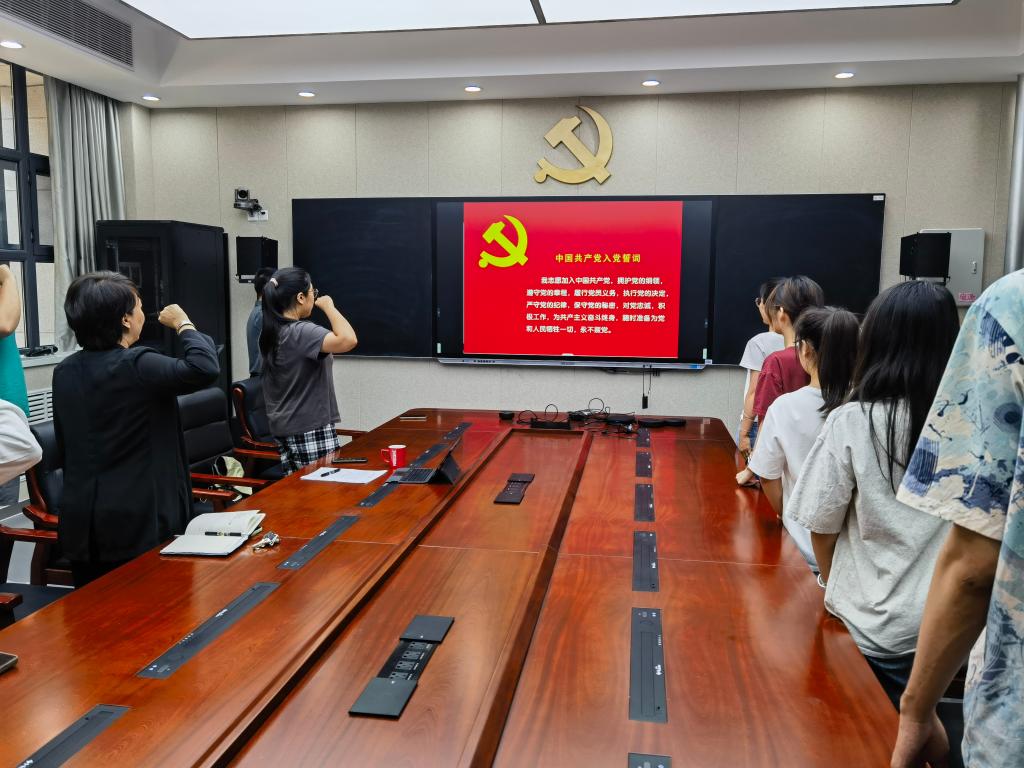 数学科学学院消息(通讯员 郭小玮)为庆祝中国共产党成立103周年,进一步发挥学院党建引领示范作用,切实增强党员对党纪党规的深刻理解与坚定遵循,推动党纪学习教育走深走实,6月28日,数学科学学院党委举行新党员入党宣誓仪式。院党委书记张宁出席会议并讲话,院党委副书记兼纪委书记彭永刚讲授廉洁教育专题党课。学院学生工作办公室主任王建君、辅导员孙贺、李雨桐,2024年新发展党员、2024届毕业生党员参加活动。