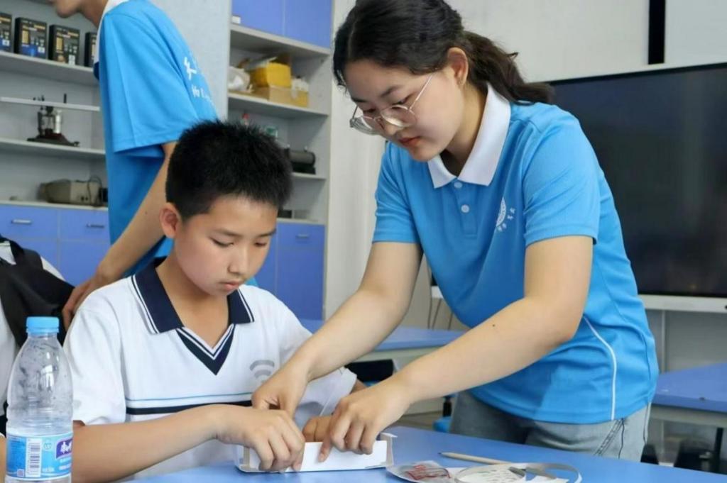 党员们邀请蓟州区东施古镇初级中学师生走进师大校园,通过在纸电路上搭建灯箱系统,为孩子们埋下了一颗深入探究物理的种子,也让他们更加深入了解师大的历史沿革、校园文化,进一步开拓视野,激发学习热情,助力乡村振兴。