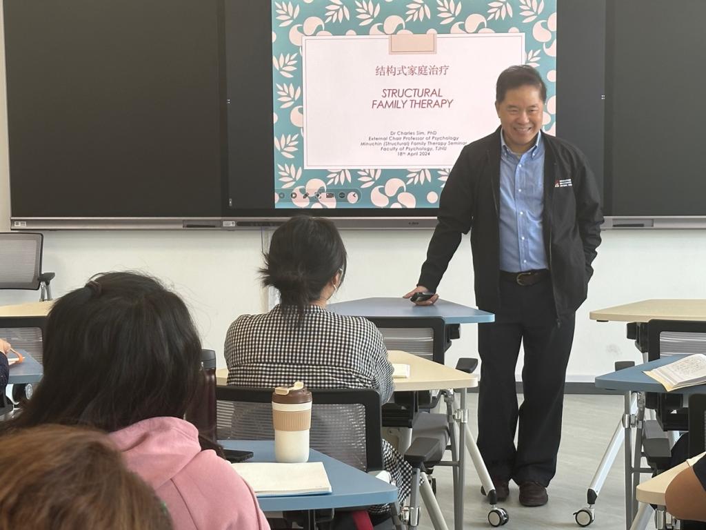 沈德金教授系统介绍了结构化家庭治疗的四步模型及其应用,通过使用家庭访谈的视频片段和角色扮演练习,提高教师对理论应用于临床实践的认识。培训内容涵盖婚姻和家庭治疗的理论基础、概念框架和临床技能。培训过程中老师们不断反思,互相交流,积极参加角色扮演。在分享环节,参训老师均表示通过培训更加系统地了解家庭治疗模式的理论知识,对案例概念化的评估和干预机制有了更清晰的思路,收获满满,受益匪浅,会将学到的理论方法运用到实际工作中去,更好地服务有需要的学生。