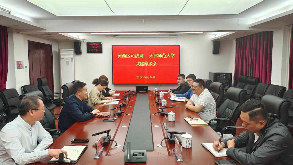 法学院消息(通讯员 王欣)4月24日上午,法学院党委副书记、纪委书记尹德军一行到访天津市河西区司法局,就深化共建事宜进行座谈交流。河西区司法局副局长李咏梅、政治处主任贺学平、河西区柳林街道党工委副书记、办事处主任殷卫明,及河西区司法局、河西区柳林街道相关职能部门负责人,法学院就业事务辅导员参加座谈。