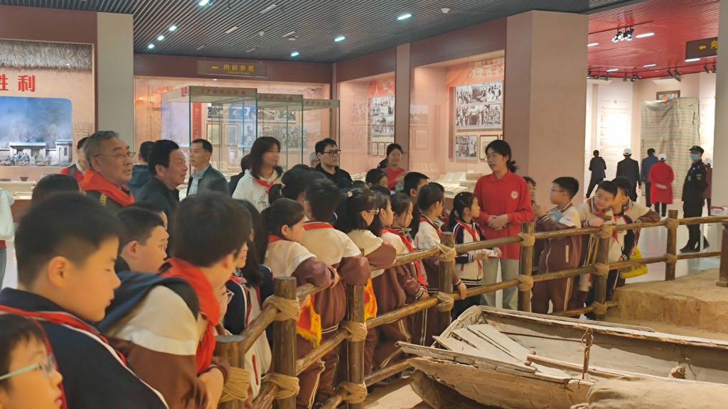 平津战役纪念馆是全面展现平津战役取得伟大胜利的专题性纪念馆,是开展爱国主义和革命传统教育的重要阵地。研学过程中,全体师生怀着崇敬之情依次参观了序厅、战役决策厅、战役实施厅、人民支前厅、英烈业绩厅、伟大胜利厅六个展厅。平津战役沙盘推演、天津总攻金汤桥会师的珍贵照片、解放战争中使用过的长短枪支、人民群众支援前线的木船和推车、英烈墙上镌刻的一串串烈士姓名……将现场师生带回到激情燃烧的革命战斗岁月。师生认真听取赵全顺老师的生动介绍,深入了解相关历史细节,深刻感悟中国共产党人砥砺奋进的初心和使命。