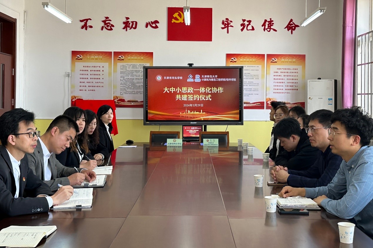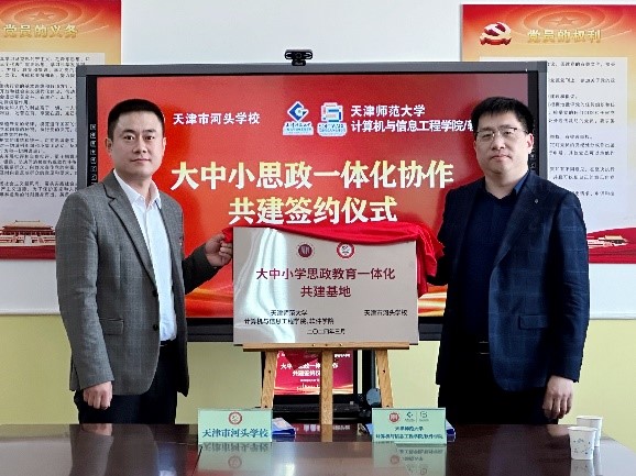 计算机与信息工程学院党委副书记米溢谈到,学院长期以来立足“科普+思政教育”推进大中小学思想政治教育一体化建设,依托专业优势,在全市多所中小学开展IT科普思政活动,获得了广泛好评,取得了良好的社会效应。河头学校校长王秀平表示,河头学校致力于科学教育与思想政治教育深度融合,希望借助学院的平台,促进学校科学教育水平有效提升。仪式上,双方在IT科技特色课程开发、红色资源共享、科学教育师资培养、中小学生研学旅行等方面达成了初步合作意向。
