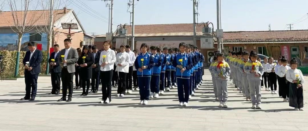 签约仪式后,学院学术硕士党支部学生党员与天津市河头学校师生、家长代表一起来到安幸生烈士故居,开展“清明时节党旗扬,家风传承团队强”大中小幼一体化清明节主题实践活动。活动中,学生党员在安幸生烈士纪念碑前高唱国歌,并向烈士塑像三鞠躬,敬献鲜花,表达了对先烈的深切缅怀和崇高敬意。在“传承精神”环节,学生党员为河头学校团员佩戴团徽,并与师生一起聆听了河头学校“幸生筑梦”思政讲师团团长、校长王秀平的现场思政课。在参观安幸生烈士故居过程中,学院学生党员高若莹与河头学校团员、少先队员、幼儿园小朋友共同组建宣讲团,互相讲解烈士英勇事迹,带领在场师生重温可歌可泣的革命历史。