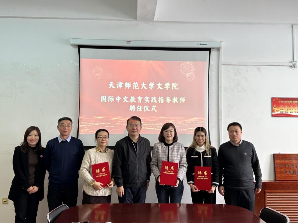 赛前,文学院有关负责同志与本次比赛外聘评委开展交流座谈,并向外聘评委颁发“国际中文教育实践指导教师”聘书。受聘教师分别为泰国布拉帕大学师范学院汉语系主任方美花、天津瑞景中学高级教师尹倩以及我校国际教育交流学院教师于泓珊,她们或为泰国本土汉语教师,或曾远赴国外孔子学院任教。