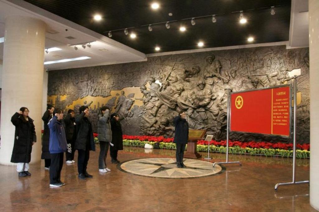 学院师生代表跟随讲解员参观了烈士陵园建国后纪念馆和革命烈士纪念馆。珍贵的图片和实物史料、烈士的感人故事,让大家重温先辈浴血奋斗的伟大精神。新闻传播学院2023年新一批入党和入团学生代表在纪念馆浮雕墙前进行宣誓。