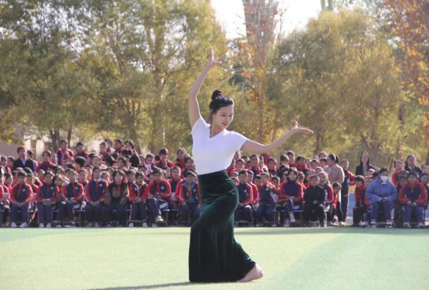 在繁忙的教学任务之余,支教团成员充分发挥文艺特长,精心排练了歌曲串烧《永远仰望星空的少年》、舞蹈《YES!OK》《彩云之南+奔跑的青春》等精彩节目,在文艺演出中展现了天津师大学子的热情与风采。其他教育援疆团队各显神通,带来了陶笛、唢呐、武术、啦啦操、手势舞、天津快板等,引得台下喝彩不断。小学生们也不甘示弱,上演了传统项目《舞龙》、京剧说唱《唱脸谱》、舞蹈《人间烟火》等精彩节目,令远道而来的支教老师刮目相看。