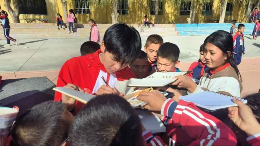 “人生是旷野,不是轨道。勇敢的人先享受人生!”支教团成员郑宇辉一笔一划地在小学生的本子上写下了对他们的美好祝愿。文艺演出结束后,小朋友们簇拥着这些来自远方的支教老师,眼中满是憧憬与期待,捧着笔记本看着支教老师亲手书写的寄语,脸上绽放出质朴而热烈的笑容。支教团成员熊嘉奕说:“这几次送教下乡活动,对于我们而言是非常难忘且有意义的经历。与孩子们互动,看到他们纯真的笑脸,听到了他们真挚的问题,也感受到他们对于知识的渴望及对未来的希冀,使我更加明白了教育不仅仅是传授知识,更要帮助孩子们开阔视野,指明前进方向。希望我们的到来能给他们带来更多欢乐,为他们成长成才树立良好榜样。”