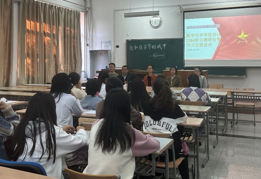 数学科学学院消息(通讯员 郭小玮)为深化三全育人综合改革,推进本科生导师制落地见效,近日,数学科学学院2023级本科生全体班级开展“我和我求学的城市——数学:我想对你说”主题班会。学院领导班子、全体本科生导师及辅导员深入教室,与学生们互动交流。