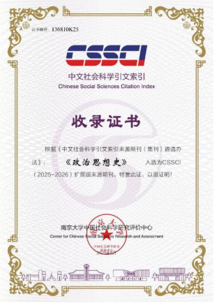 《政治思想史》入选为CSSCI(2025-2026)扩展版来源期刊;