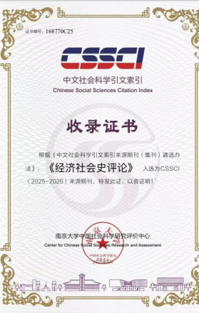 《经济社会史评论》入选为CSSCI(2025-2026)来源期刊;