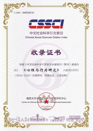《心理与行为研究》入选为CSSCI(2025-2026)来源期刊;