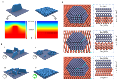 受中国上古神话——大禹治水堵不如疏思想的启发,抑制枝晶的自我放大效应,合理地调节它们的生长,而不是完全阻碍它们的形成,可能是提高金属阳极稳定性的一种更为有利的动力学途径。具体而言,如果电极表面存在大量微小的、大小相似的、均匀分布的枝晶,其充放电时周围电场不会明显变化。同时,大量枝晶的生长相互竞争,可以有效避免单个枝晶的异常长大。因此,金属的重复电镀/剥离只会导致树枝状物的均匀长大和缩小,而非形成有害的大枝晶。