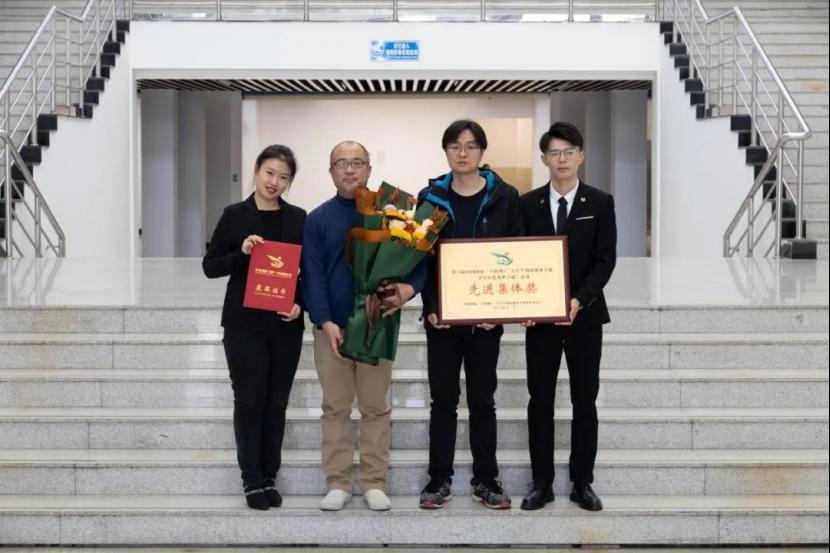 徐锟(左二)与胡东宁教授(左三)以及团队同学们的合影